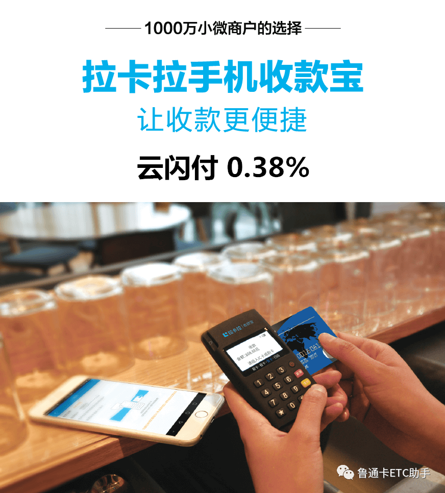 拉卡拉是中国领先的综合性金融科技集团,为个人和企业用户提供安全可靠的全面金融服务。 作为国内首批获得央行颁发牌照的第三方支付企业、国内领先的金融科技企业。 其中拉卡拉支付股份有限公司于2019年4月25日在深交所上市 。 微信、支付花呗、云闪付0.38%手续费 花呗-微信-云闪付单笔5000 0.38% 智能收款 无需打开APP,内置流量卡、后置摄像头 代理收益 代理收益:客户刷卡、扫码交易,代理商有提成分润,举例:代理结算价手续费0.51% 客户刷卡手续费0.59 ;客户刷卡1万元,代理收益根据结算价享有提成 8元; 收益说明 根据大数据统计 每个人每月刷卡5万, 机器每月收益: 5乘以8元=40元;1年约为480元 10台收益=4800 100台收益=48000 1000台收益...... 就像柳传志在上市当天的致辞中表示,拉卡拉的成功上市具有典型意义,创业十几年来,拉卡拉所在的行业受到业务模式创新和技术创新连续不断地冲击,这表明创业者不但要有坚韧不拔的意志,还要有很强的学习能力。 2005年,雷军作为天使投资人曾向拉卡拉投出25万元。招股书显示,目前雷军持有拉卡拉407.52万股,IPO前持股比例1.13%,发行后持股比例1.02%。 我 们 招商啦 招商时间:永久有效 招商加盟代理 招商咨询代理电话:15069157528(微信同)