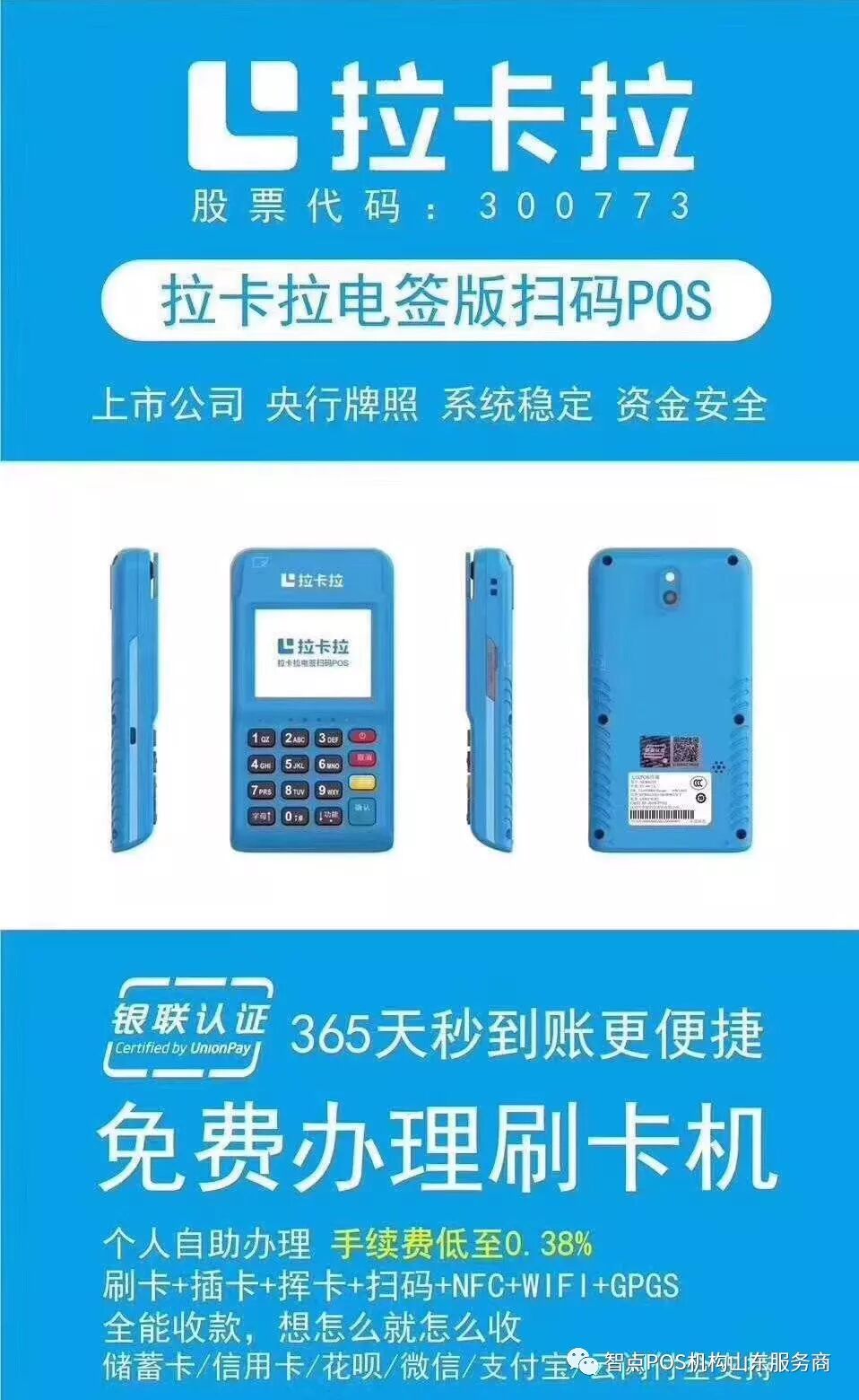 拉卡拉电签pos机作为2020年新款流行刷卡机,其功能非常强大,扫码费率为0.38,刷卡费率0.55,拉卡拉这款电签版pos机与其他机器不同之处在于,扫码单笔限额在10000元,机器全新摄像头,美观大气,最主要的一点就是他的费率是终生不变的!